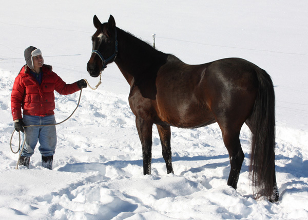 Ace is a magnificent mover. Uphill, correct, and personable, he is a Colonel Austin (ABC P-148 F [palomino]) son, out of Meads Beautiful Bay (ABC P-601 F [bay]). At 15.2hh, registered as "dark brown" by ABCR (ABC P- 1874 F), we believe him to be a smoke- result of the dilute palomino coloration of Colonel Austin crossed with his bay dam. Ace has produced beautiful babies with a mare just shy of 15hh, ranging in height from 14.3h to over 16hh. His babies are all uphill, correct, beautiful movers, and kind, ranging from buttermilk to dark honey duns and an unusual smoke coloration. We are looking forward to Ace's Sport Horse line with our lovely 16.1hh Belgian Warmblood mare with Donnerhall bloodlines, Delta Zeta (BWP 056-002-U002002728 & AWS Preferred 203420). Feel free to contact us if you are interested in one of their babies, or a Lusitano Iberian Sport Horse youngster out of one of our Amer. Bashkir mares.